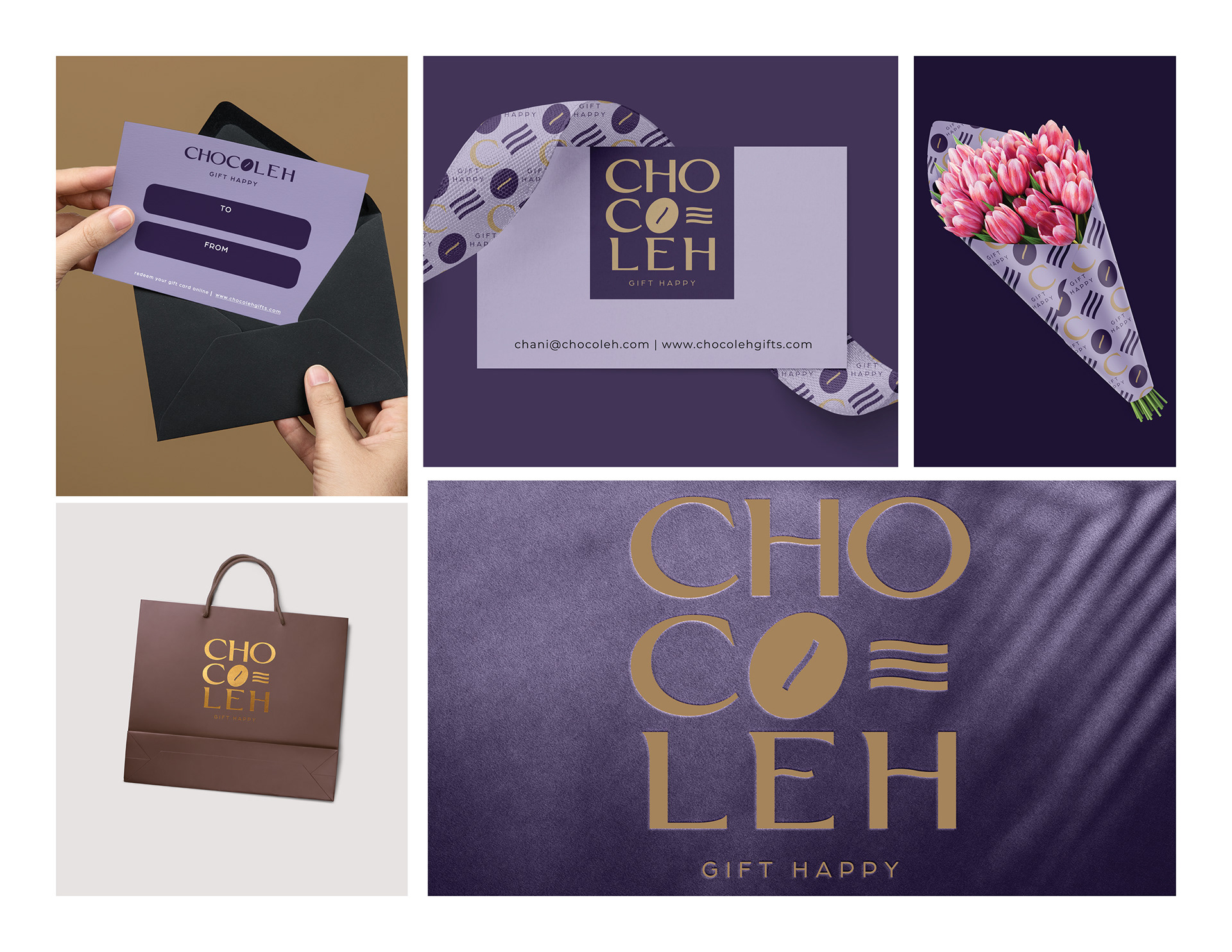 Branding created for Corporate Gifting Business. Elegant Coloring, posh serifs, and swish in the O representing a cacao bean.